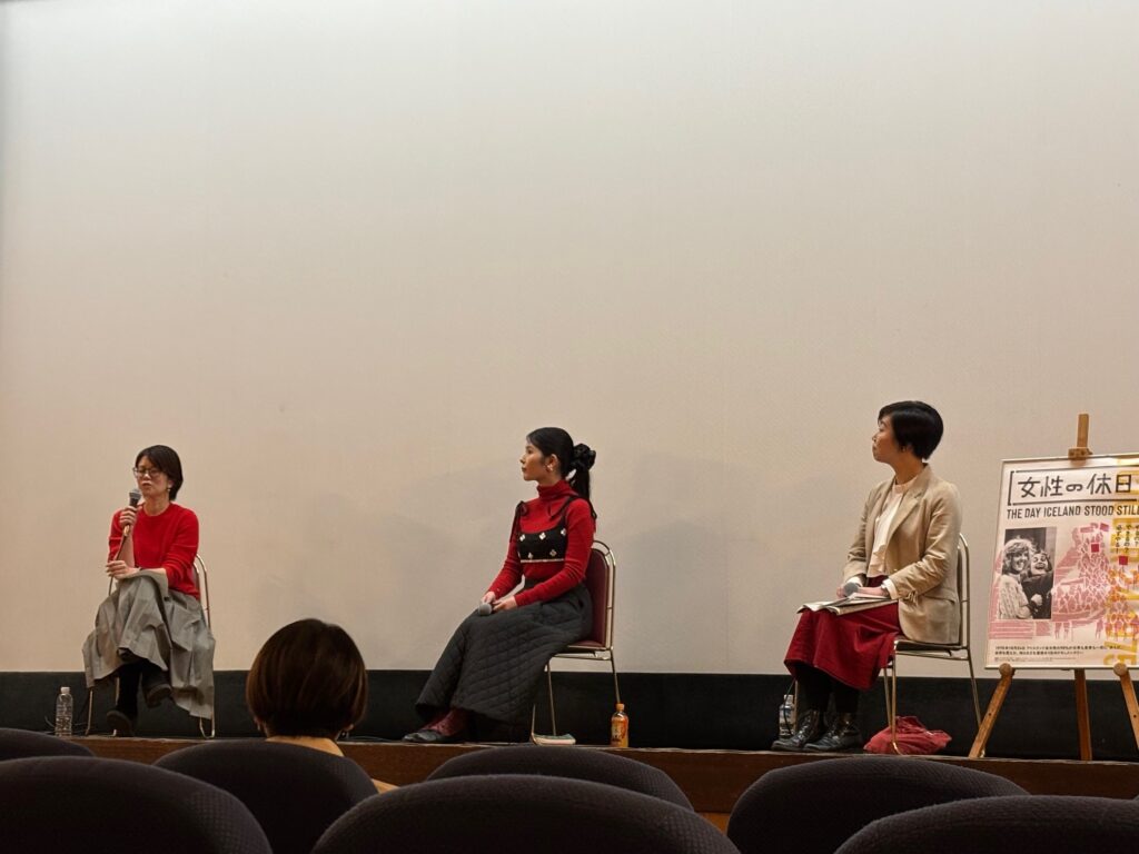 フォーラム前半は、1975年10月24日、アイスランド全女性の約90%が一斉に仕事や家事を休んだ一日”女性の休日”を取り上げたドキュメンタリー映画「女性の休日」を上映し、後半は映画の内容をふまえたトークセッションを行いました。